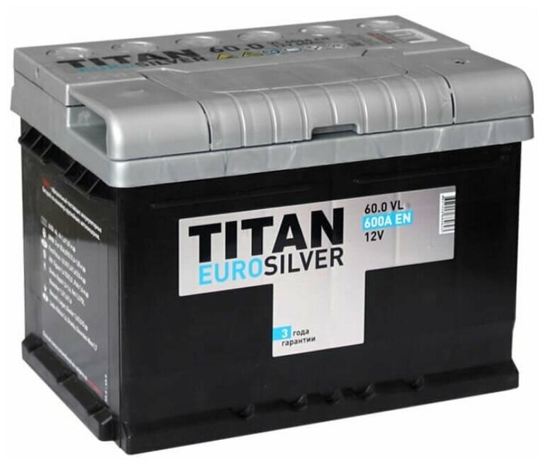 Аккумулятор TITAN EUROSILVER, 60.0 VL низкий, 600А (Обратная полярность)
