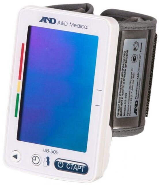 Лучшие цены. Описание Цветная шкала ВОЗ. Датчик правильного положения руки. Два блока памяти. Режим «Гость». Экстра-большой дисплей. Расчет среднего давления, расчет среднего утреннего и вечернего давления. В комплекте с жестким кейсом. Модель UB-505 Тип Тонометр запястный Тип манжеты на запястье Память на 60 измерений Память для 2-х пользователей ДА Управление одной кнопкой ДА Накачка воздуха автоматическая Определение частоты пульса ДА Пульс 40-200 Точность измерения пульса +/- 5 Определение артериального давления. Магазины в вашем городе.