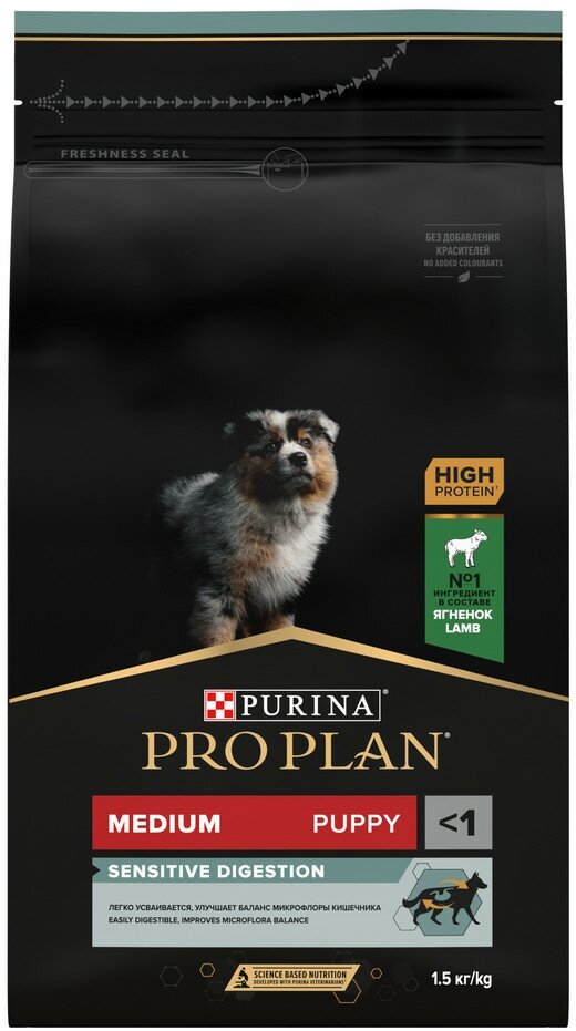 PRO PLAN PUPPY MEDIUM SENSITIVE DIGESTION для щенков средних пород с чувствительным пищеварением с ягненком и рисом (1,5 кг)