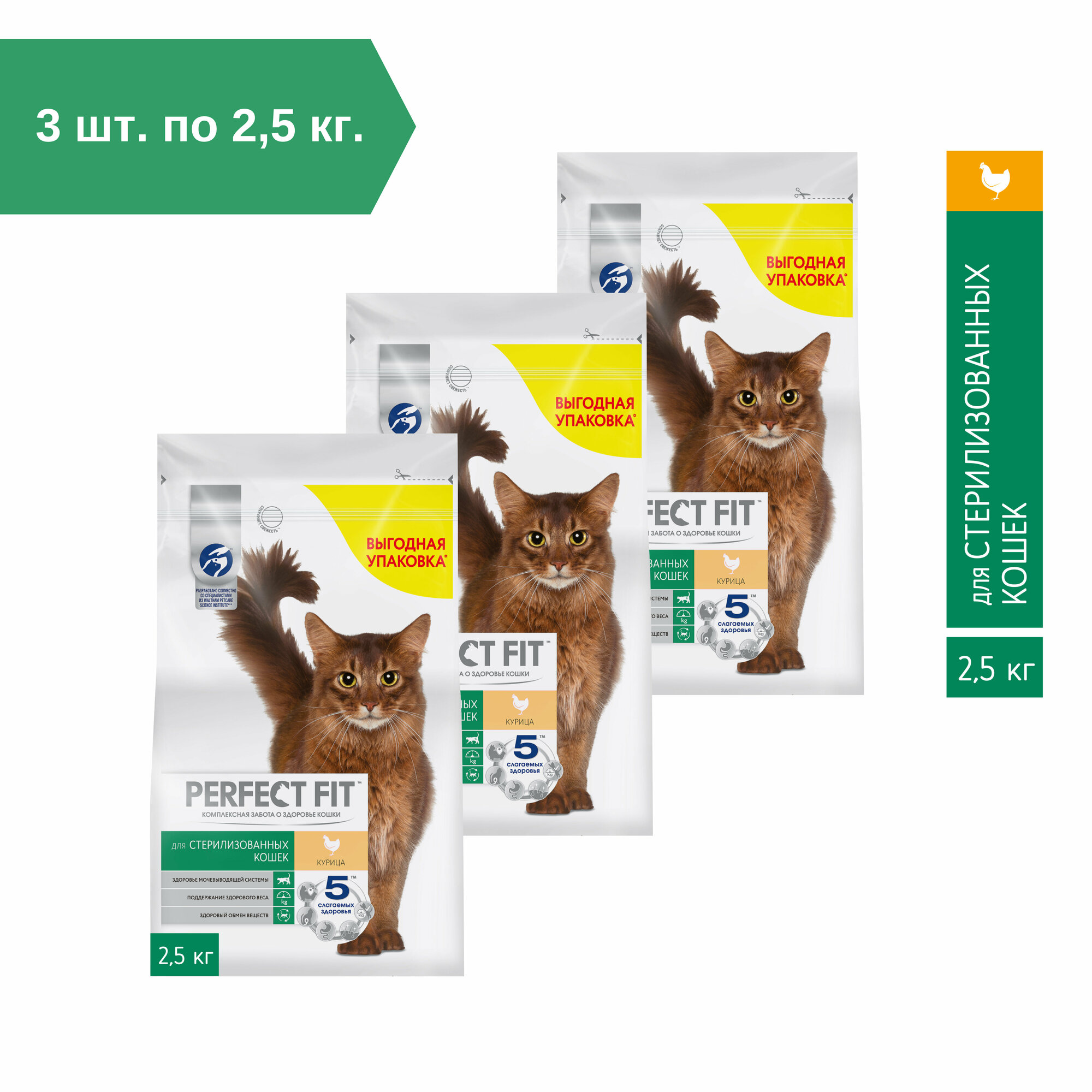 Сухой полнорационный корм PERFECT FIT для стерилизованных кошек, с курицей, 3 шт по 2.5 кг