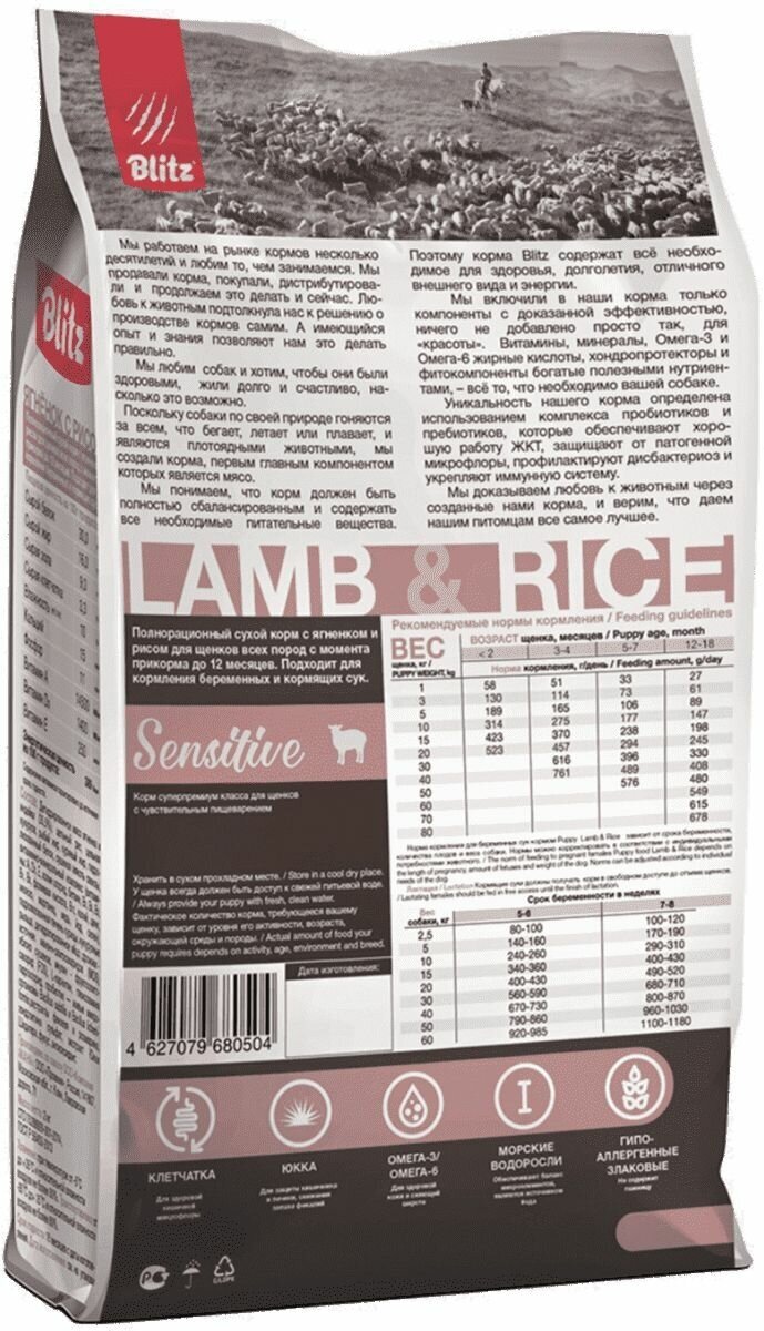 BLITZ PUPPY ALL BREEDS SENSITIVE LAMB & RICE для щенков всех пород с ягненком и рисом (15 кг) 9 510 ₽ Подробнее