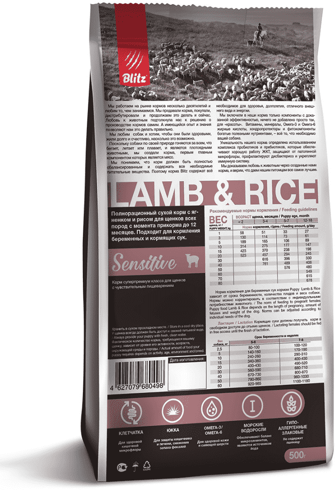 BLITZ SENSITIVE PUPPY ALL BREEDS LAMB & RICE для щенков всех пород с ягненком и рисом (0,5 кг) 480 ₽ Подробнее