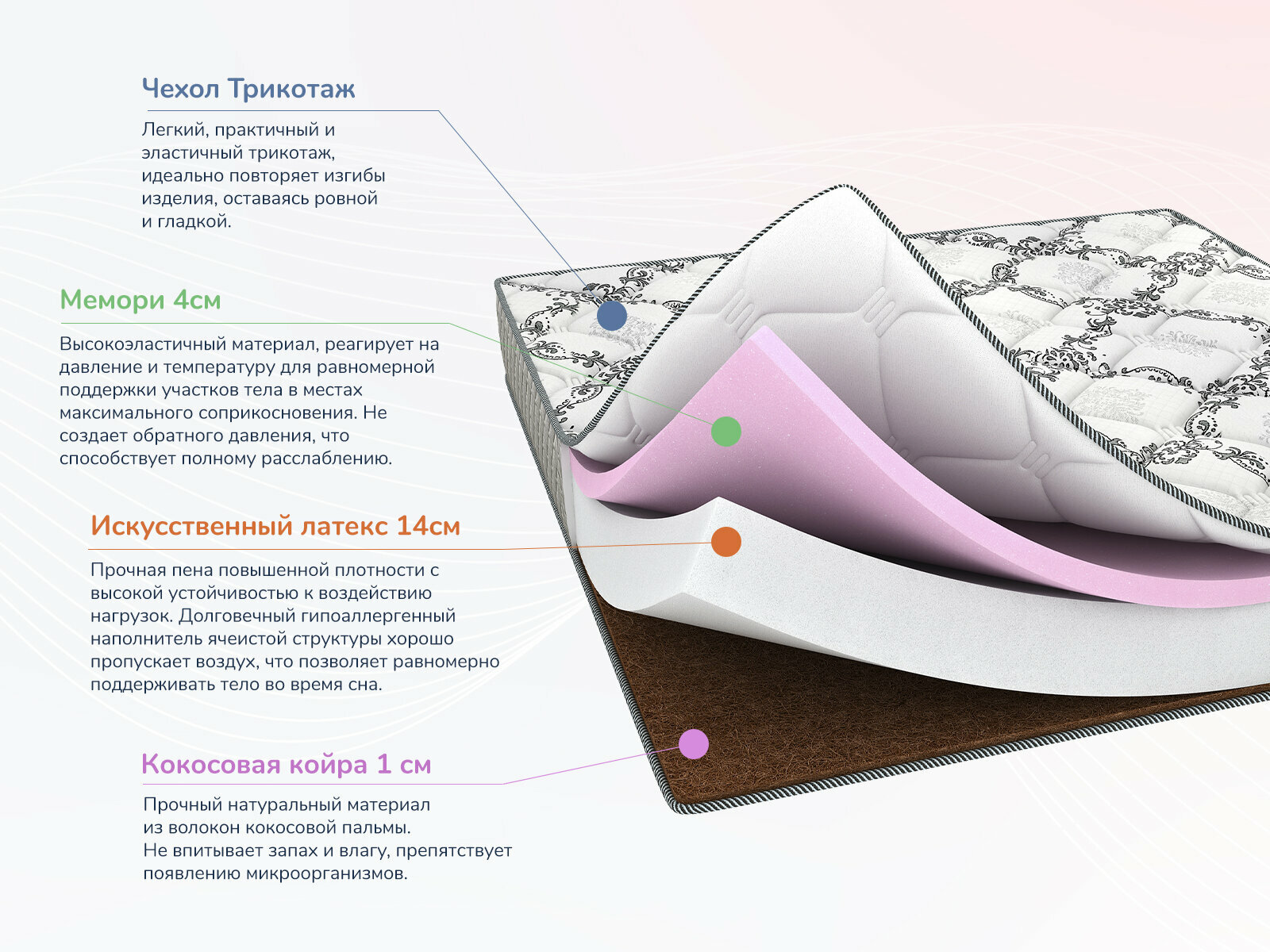 | Дополнительно | антиаллергенный / антибактериальный / чехол на молнии |