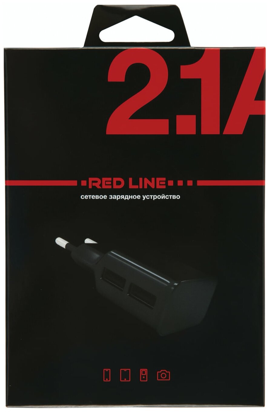 Зарядное устройство сетевое (220 В) RED LINE NT-2A, 2 порта USB, выходной ток 2,1 А, черное, УТ000009404