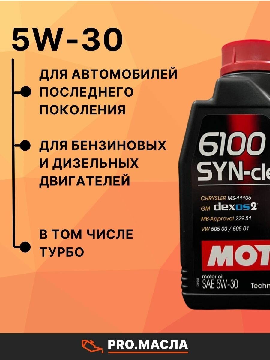 MOTUL 107948 MOTUL 5W30 5L 6100 SYN-CLEAN масо моторное ACEA C3 API SN MS 11106 GM dexos2 MB 229.51 VW 11 920 ₽ Подробнее
