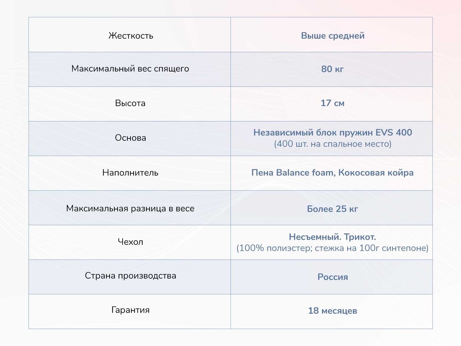 | Жесткость | низкая / высокая (1/5), двусторонний |