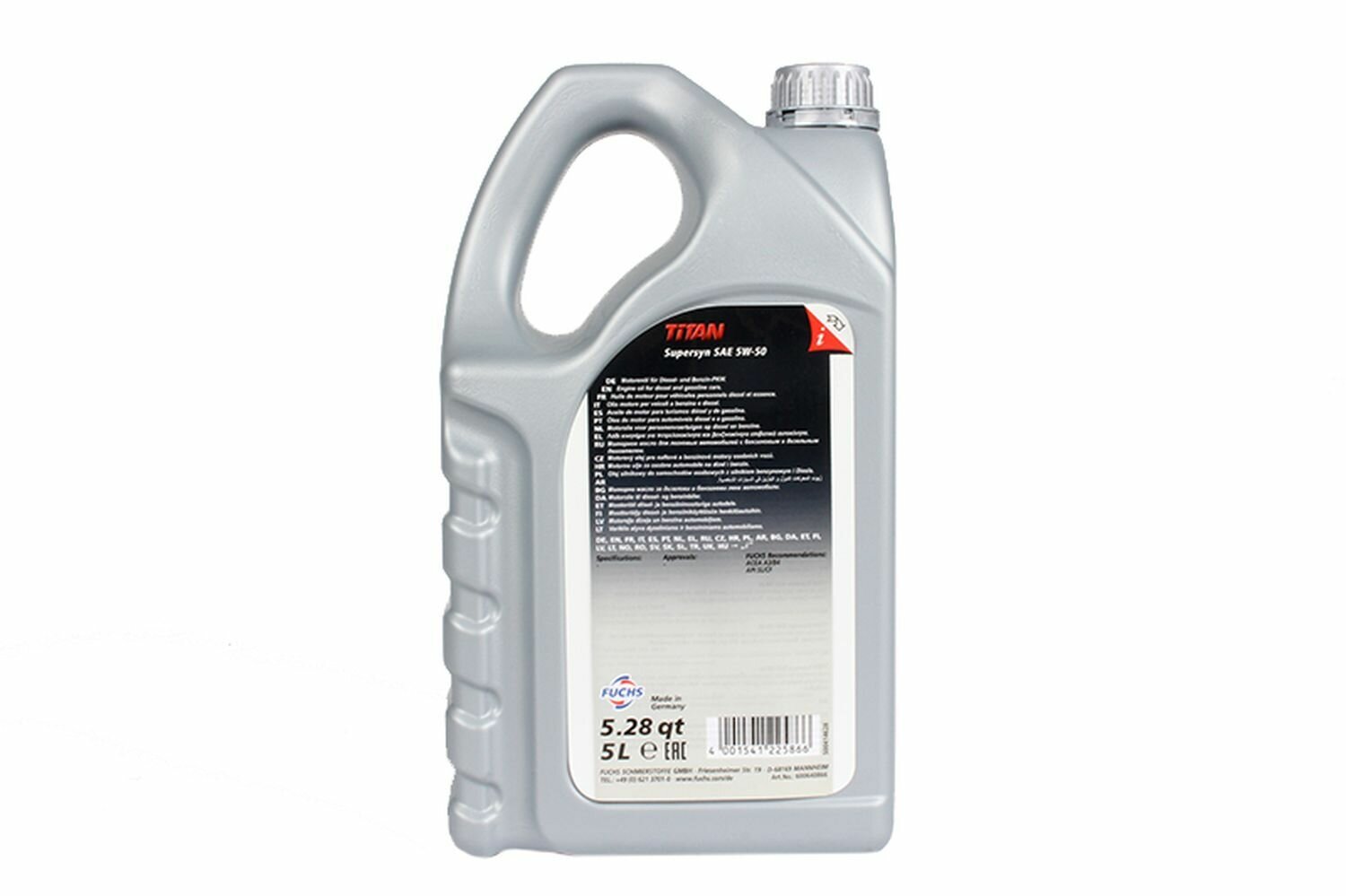 Лучшие цены. FUCHS Titan SuperSyn 5W-50 - моторное масло высшего качества для бензиновых и дизельных двигателей легковых автомобилей и минивэнов. Продукт создан с учетом повышенных требований к стабильности смазывающей масляной пленки при высоких термических и механических нагрузках. Производится на основе термически стабильных базовых масел IV-й и III-й Групп по API, и эффективного пакета присадок. Магазины в вашем городе.