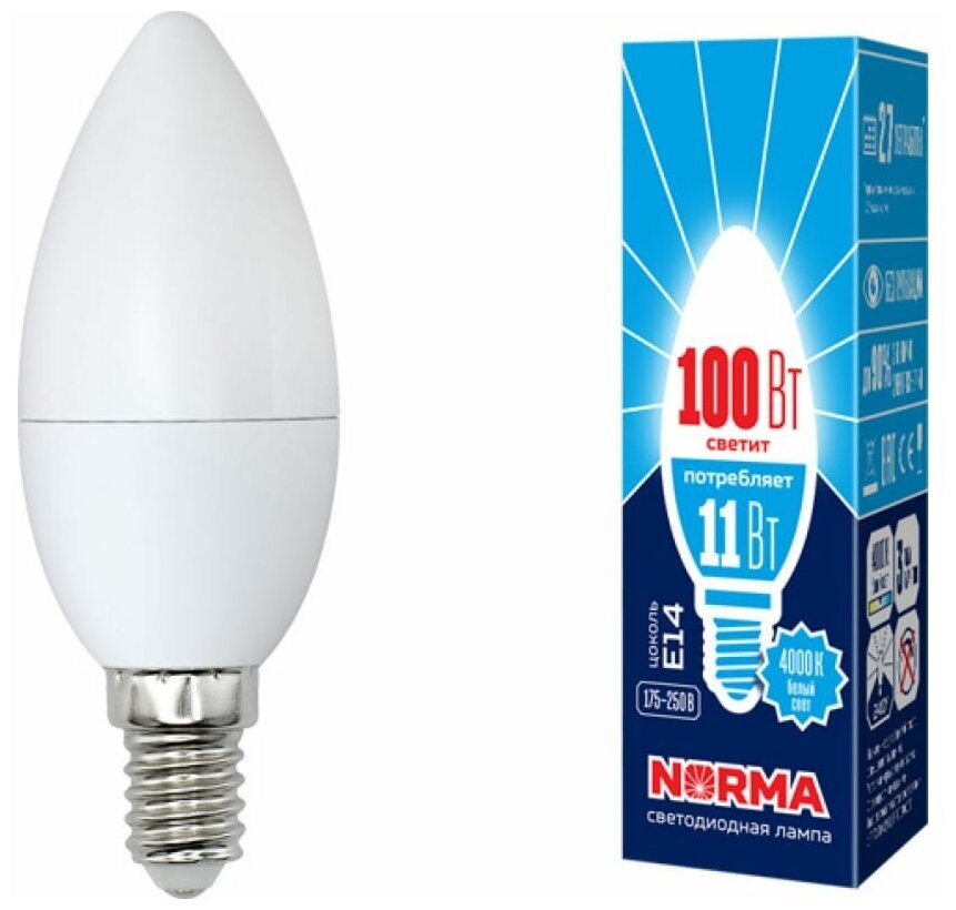 Типы/Лампочки/Светодиодные Volpe Лампа светодиодная E14 11W 4000K матовая LED-C37-11W/NW/E14/FR/NR UL-00003811