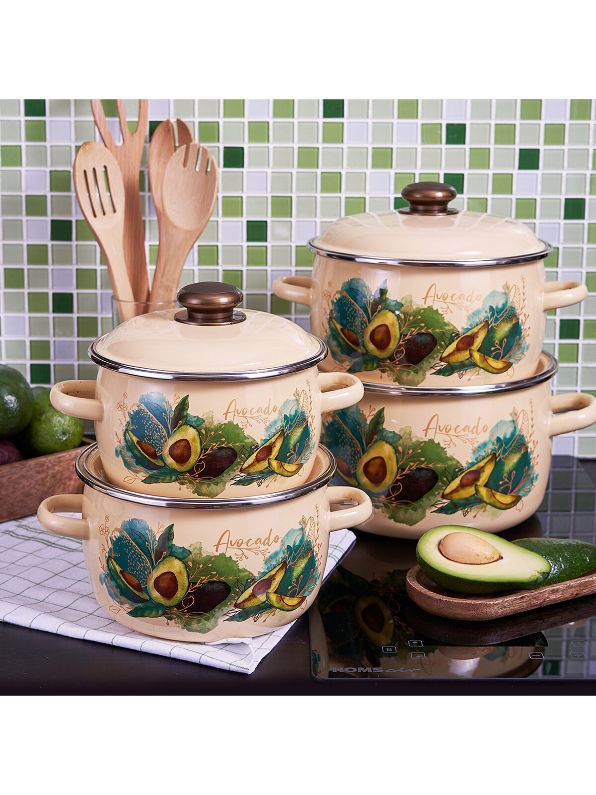 Кастрюля эмалированная Appetite Avocado, с крышкой, 4 л