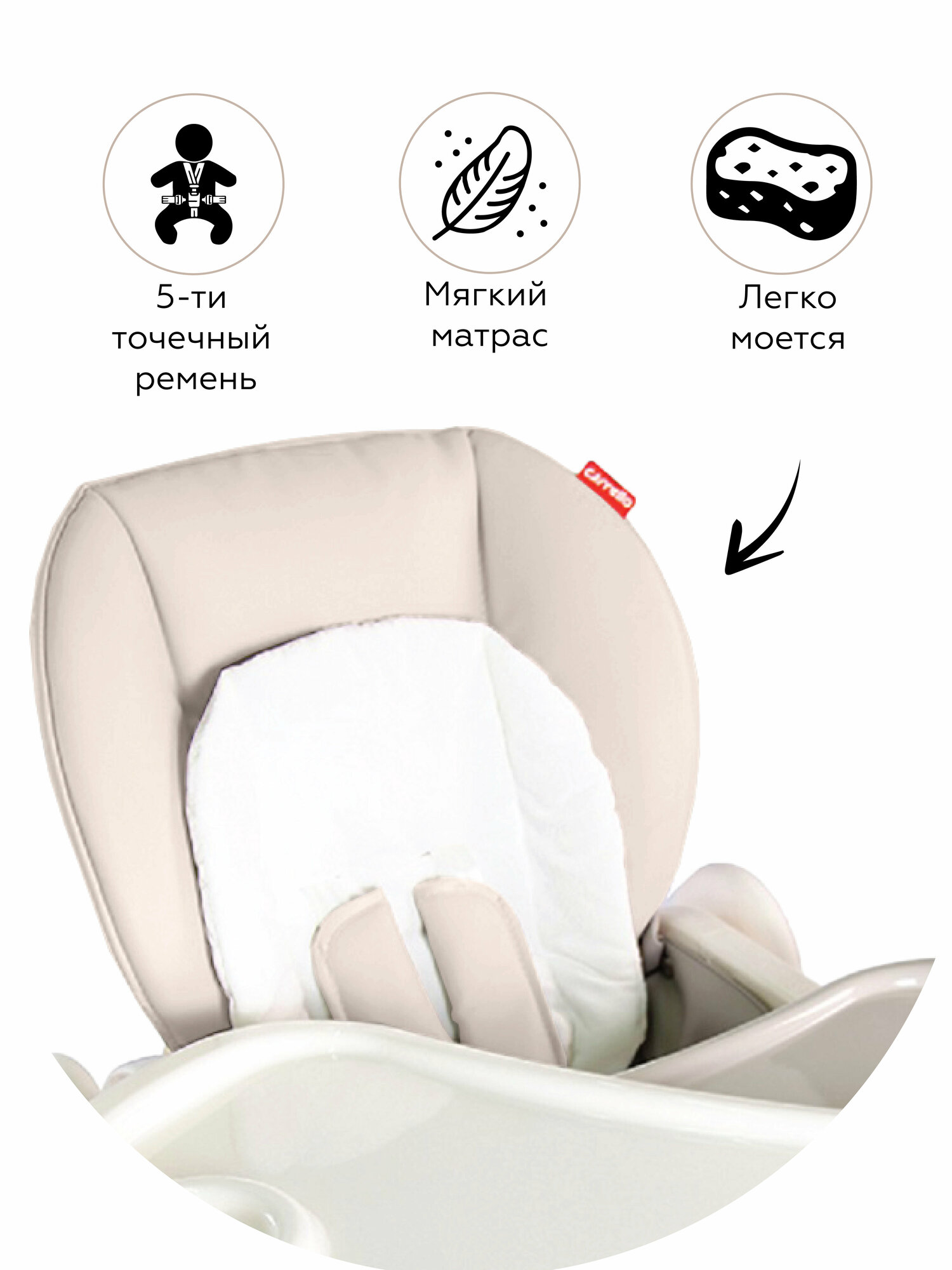 | Дополнительно | съемный столик / столешница с бортиком / ремни безопасности |