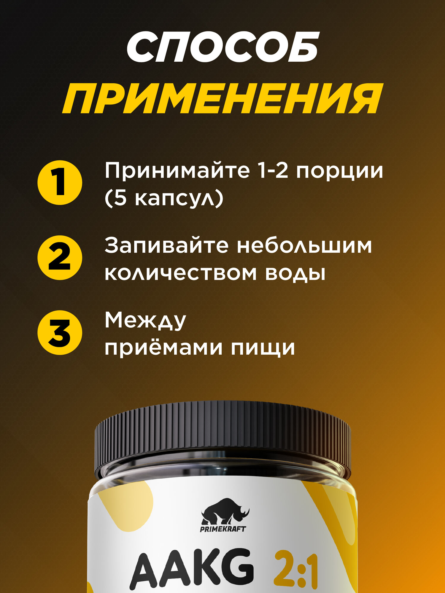 Аминокислоты PRIMEKRAFT AAKG 2:1 3000 mg (240 капсул, 48 порций) / аакг в капсулах