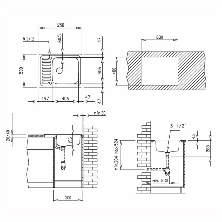 | Размеры врезного отверстия (накладная) | 740x420 мм |