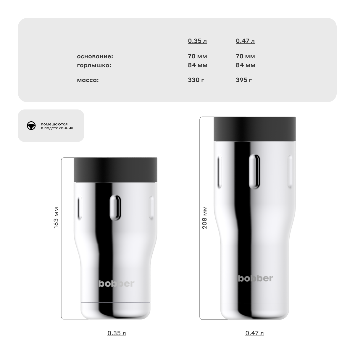 Термокружка для кофе автомобильная 350 мл с крышкой/Bobber Tumbler нержавеющая сталь/в подарочной упаковке 3 943 ₽ Подробнее