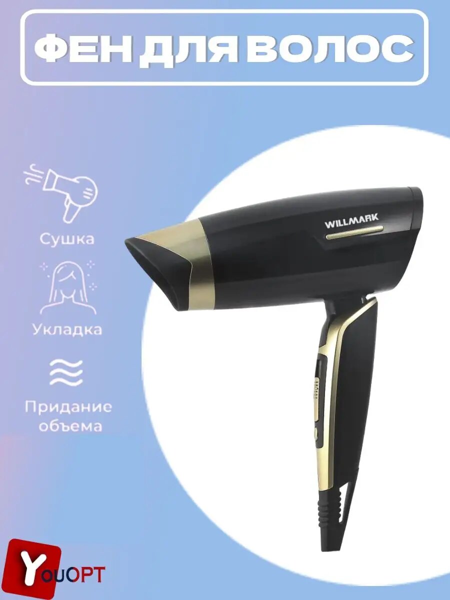 Фен Фен WILLMARK WHD-220F (черный/золото, складная ручка, 1200Вт)