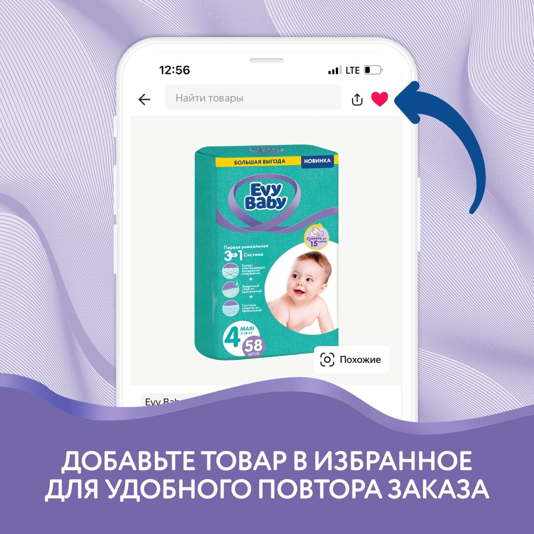 Подгузники детские Evy Baby Maxi 7-18 кг, размер 4, 58 шт