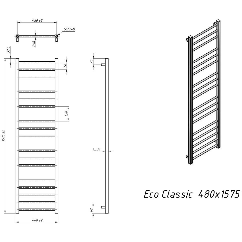 Полотенцесушитель Электрический полотенцесушитель Grota Eco Classic 480х1575 с терморегулятором