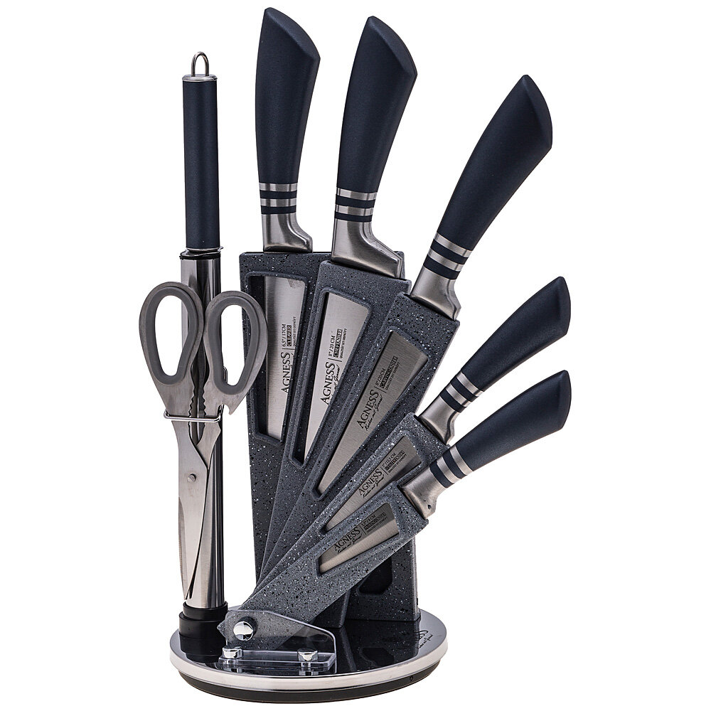 Набор ножей Agness с ножницами и мусатом на вращающейся платиковой подставке, 8 предметов
