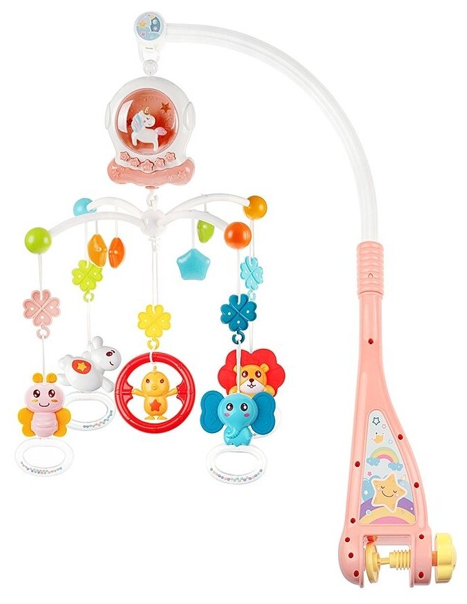 Лучшие цены. Музыкальная карусель на кроватку "Elefantino" на батарейках, 108 колыбельных мелодий, выбор мелодий, 5 съемных погремушек с элементами прорезывателя, вращение игрушек, подсветка, универсальное крепле. Магазины в вашем городе.