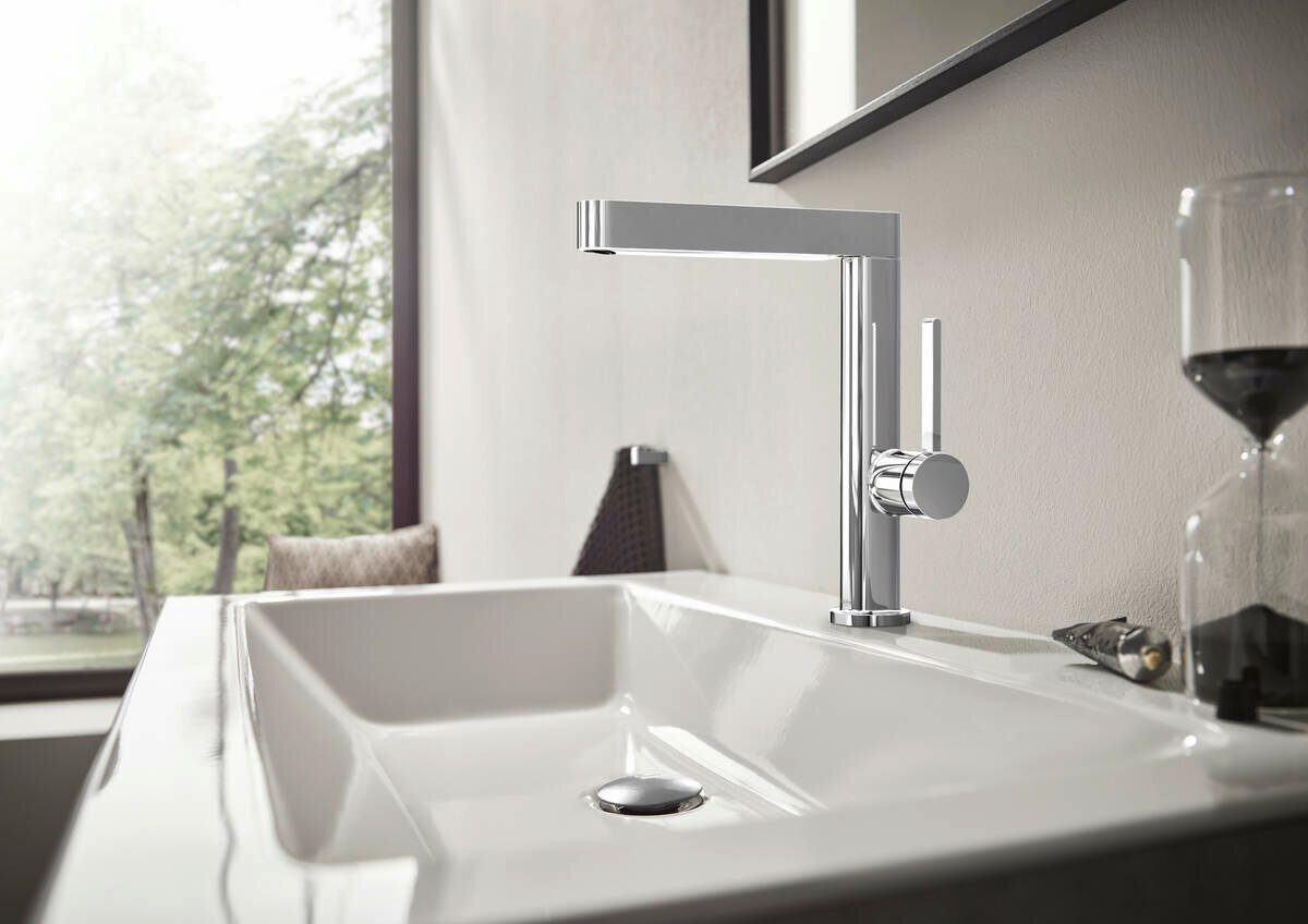 Finoris Смеситель для раковины однорычажный 230 с поворотным изливом со сливным клапаном Push-Open, 76060000 40 810 ₽ Подробнее