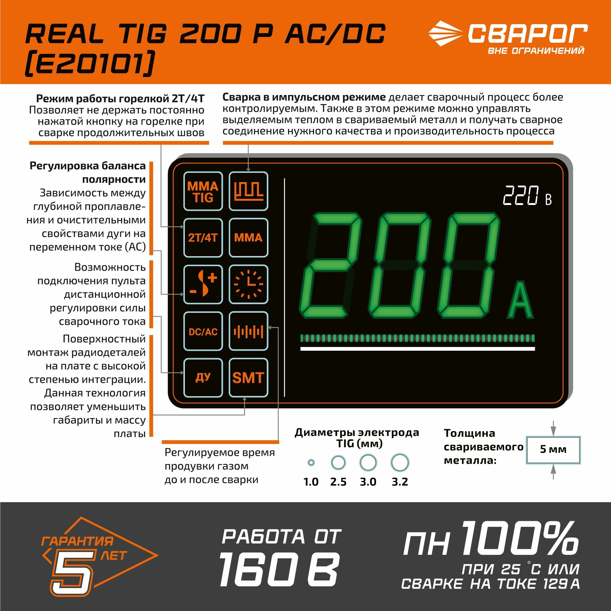 | Макс. диаметр электрода | 5 мм |