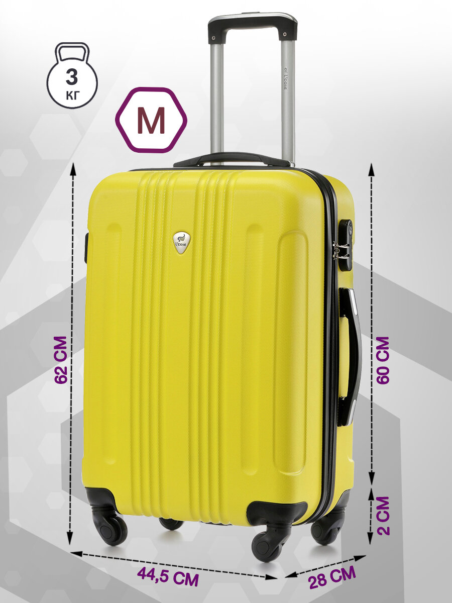 Чемодан на колесах M средний, желтый - Чемодан ABS - пластик, семейный Lcase