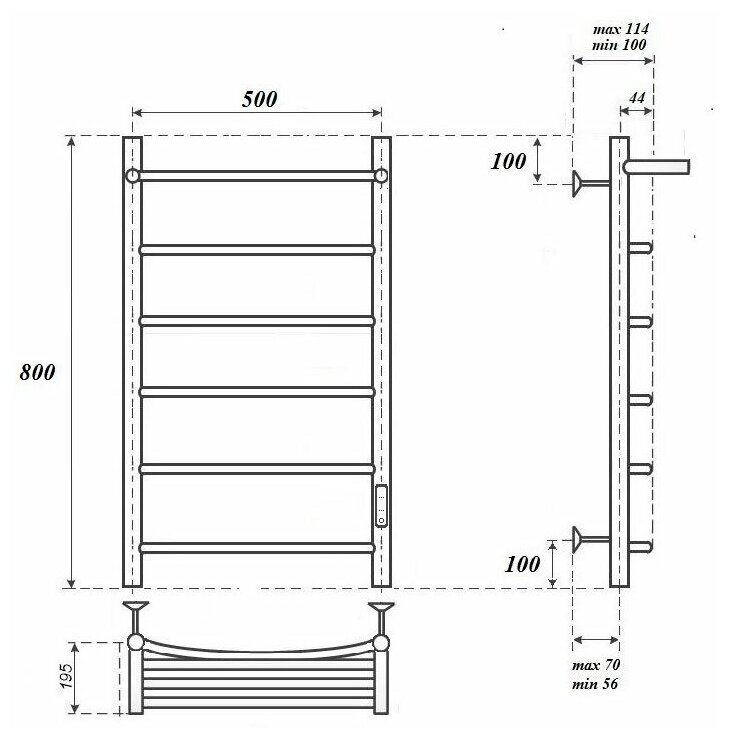 Полотенцесушитель электрический 800х532 диммер справа Point Серия 04 П5 PN04858PB