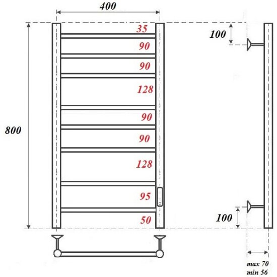 Электро полотенцесушитель Point pn10848 400x800