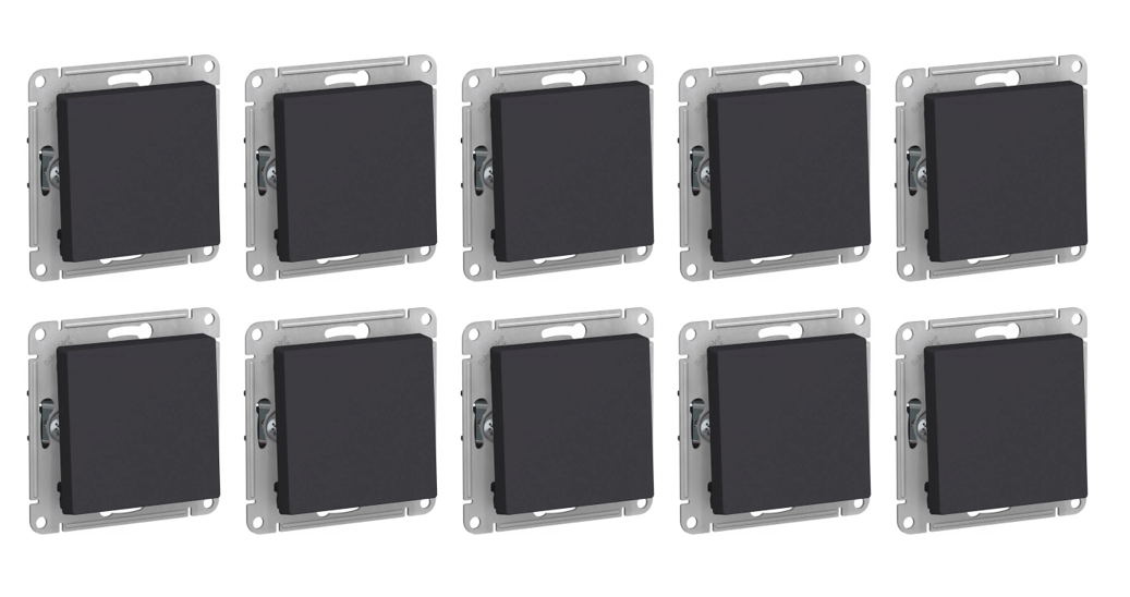 Переключатель двухклавишный карбон сх.6, 10АХ, механизм Schneider Electric AtlasDesign (комплект 9шт)