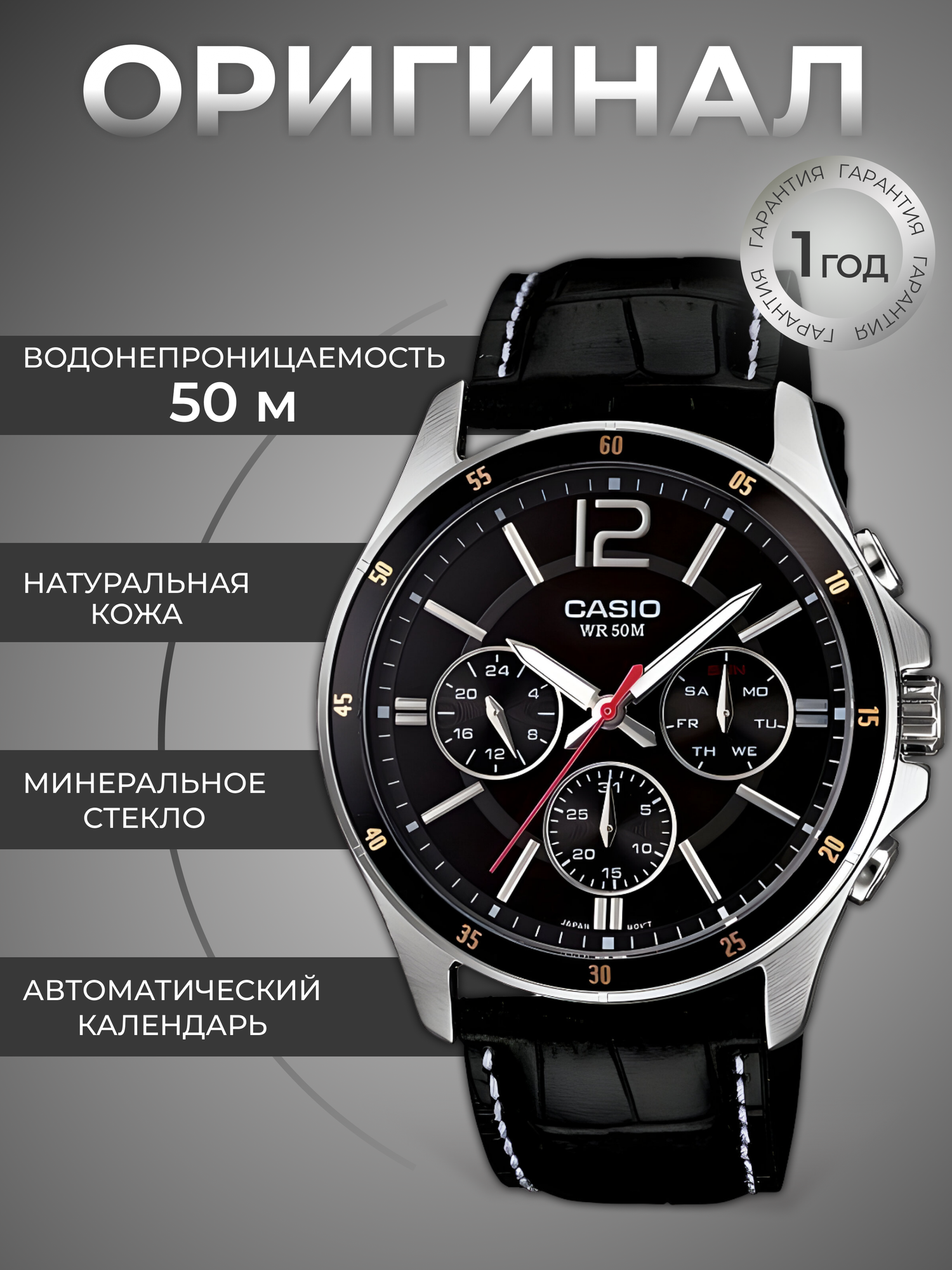 Лучшие цены. мужские кварцевые наручные часы со стрелочным календарем и 24-часовым форматом времени Мужские кварцевые часы в круглом стальном корпусе на кожаном ремешке. Японская компания «Casio» известна созданием портативной электронной и вычислительной техники. В производстве часов «Casio» славится надежным качеством часовых механизмов, производимых, в основном, в Японии, разнообразием встроенных функций, а также широким ассортиментом с четко обозначенными модельными рядами, помогающими покупателю выбрать нужные часы. Магазины в вашем городе.
