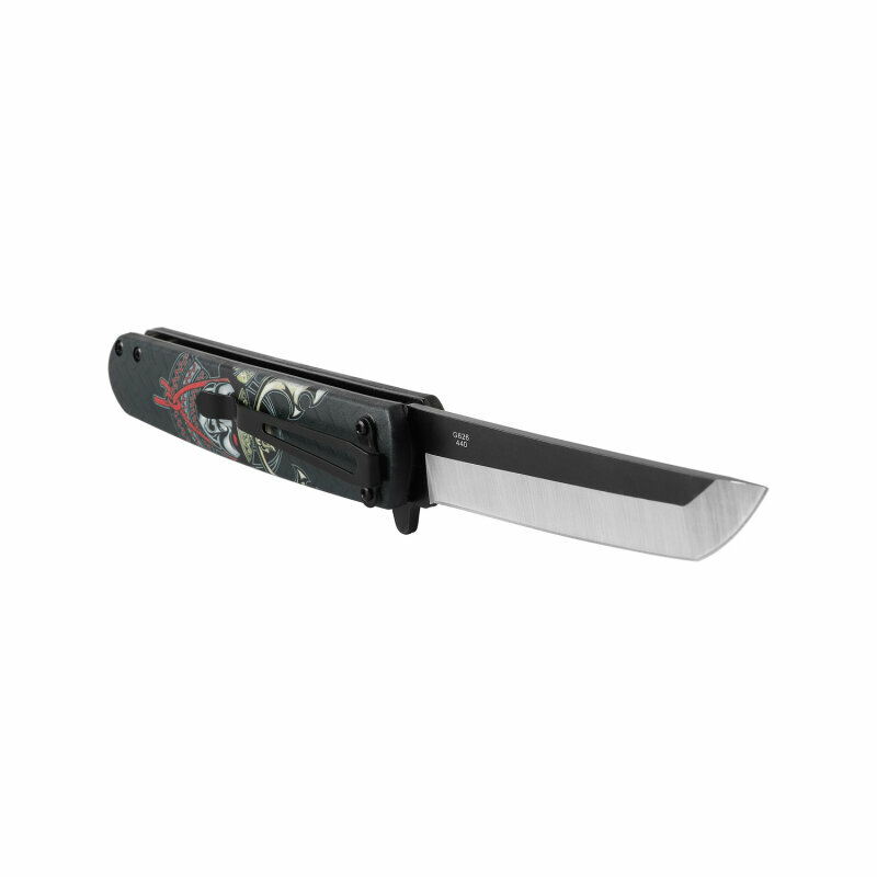 Лучшие цены. Описание Ganzo G626: Нож Ganzo 626 приятно удивит не только любителей простых и практичных EDC-ников, но также и тех, кто любят некую «изюминку» в модели. Здесь таковой является дизайнерское оформление флиппера, для которого придумали 4 различных варианта рукояти. Можно подобрать обычный чёрный цвет, а можно взять что-то из предложенных экземпляров с рисунками. Это стильно выглядит, и поможет владельцу такой модели выделиться на фоне других ножеманов. У ножа клинок формы Tanto. Магазины в вашем городе.