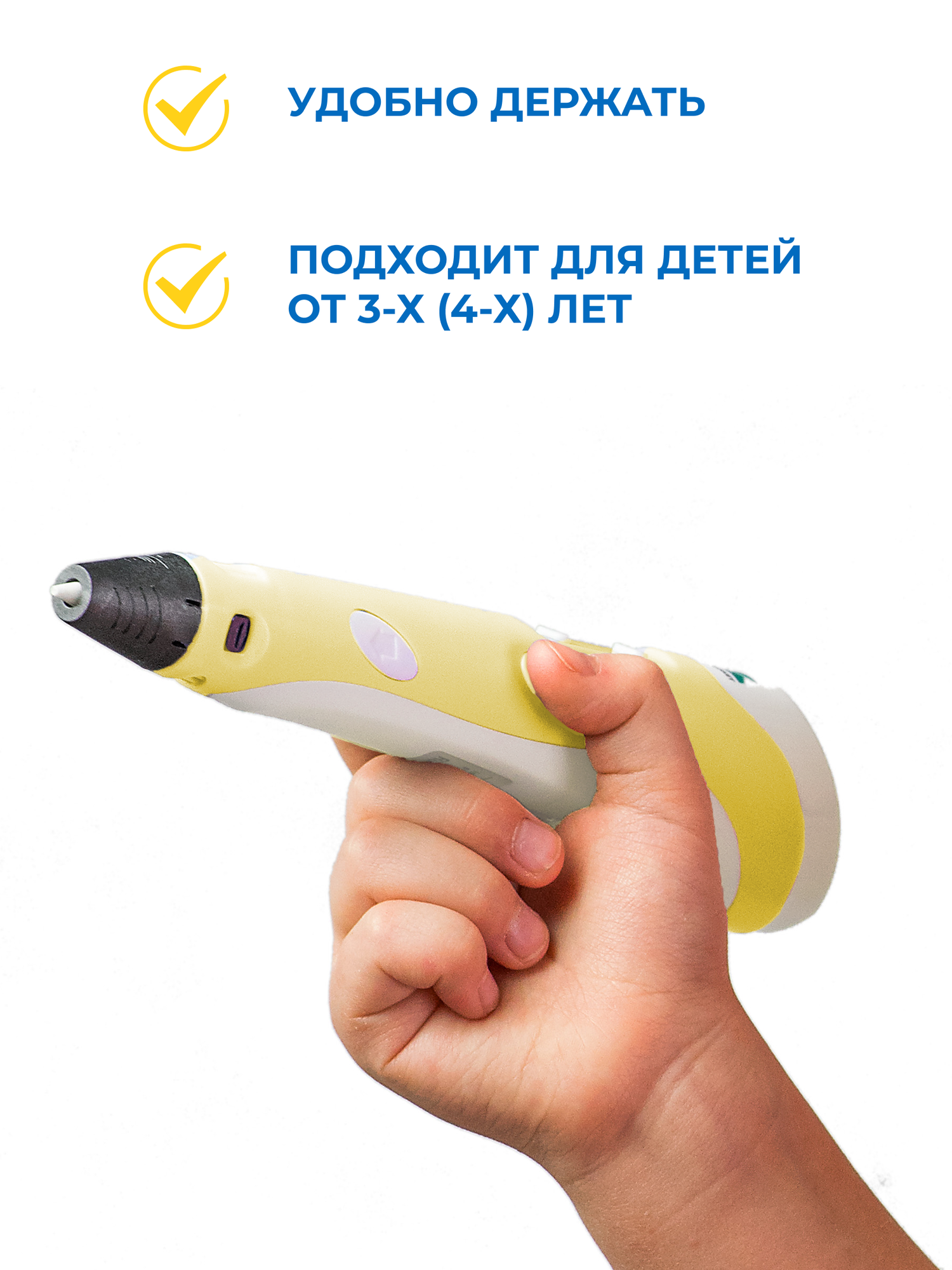 3D ручка 3DPEN-2 с подарочным набором пластика PLA 70 метров и трафаретами для 3д рисования, желтая 1 050 ₽ Подробнее