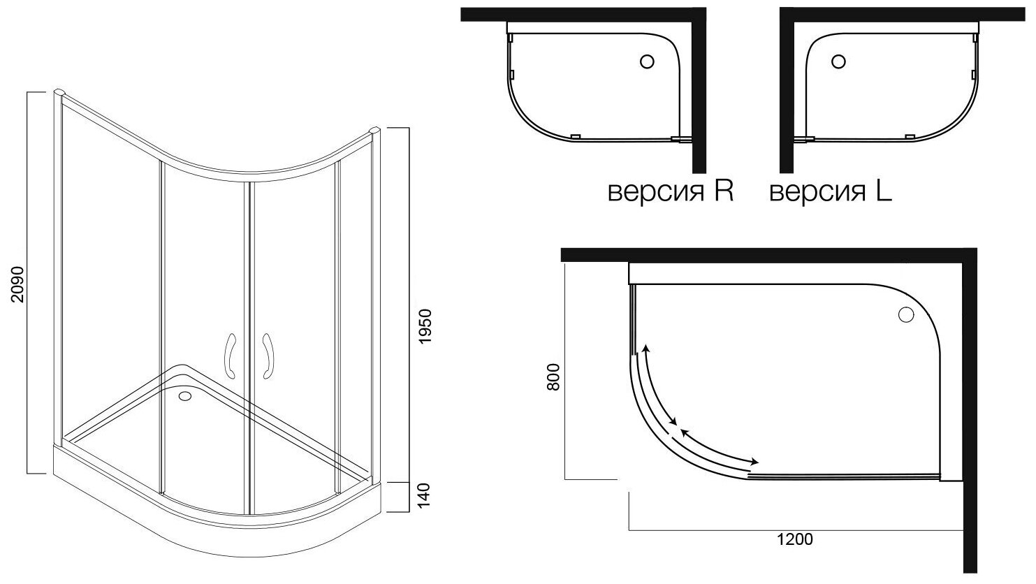 Душевые кабины Душевое ограждение Loranto CS-1285 SK low L 100*80*195