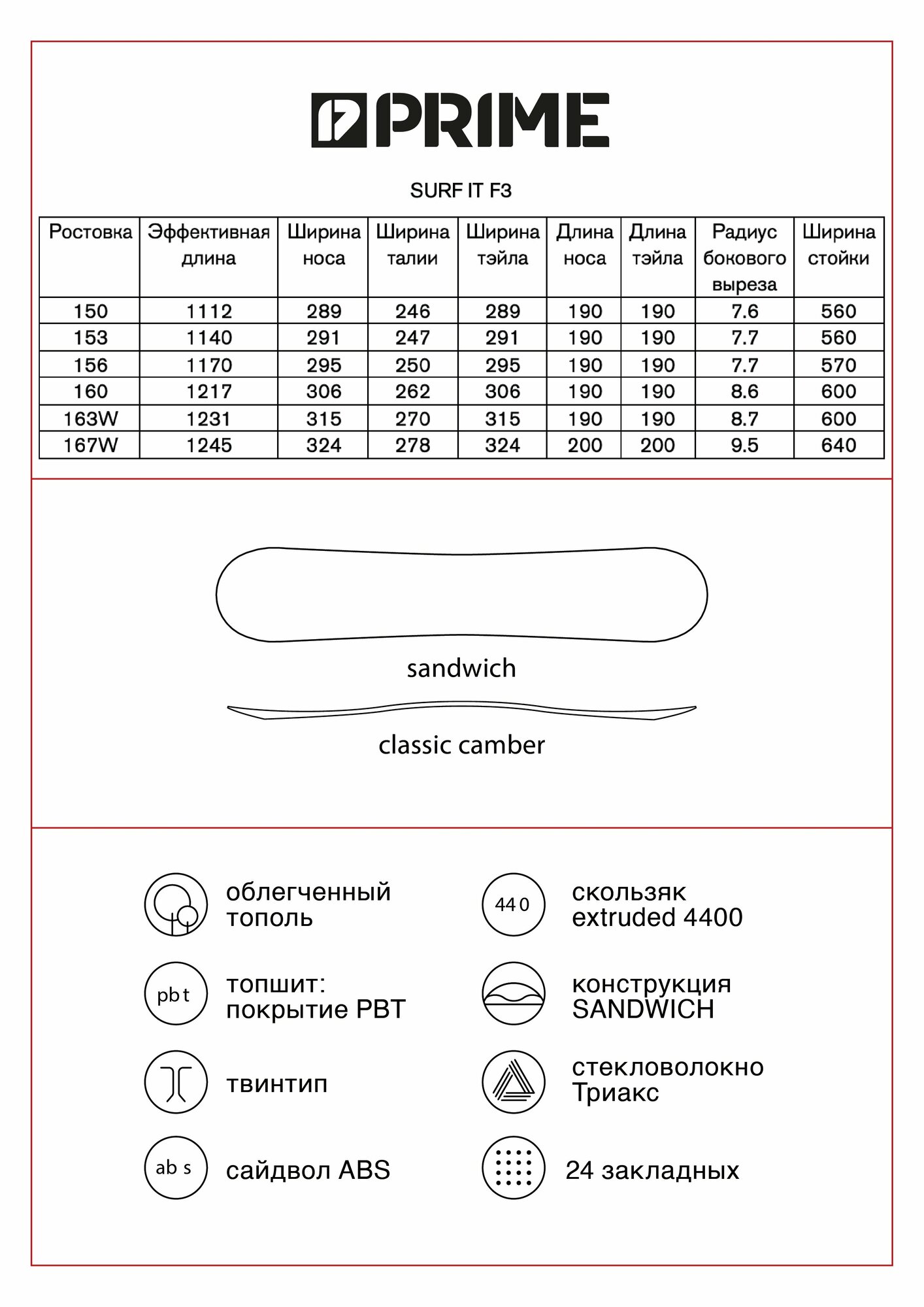 | Жесткость борда | 4 |