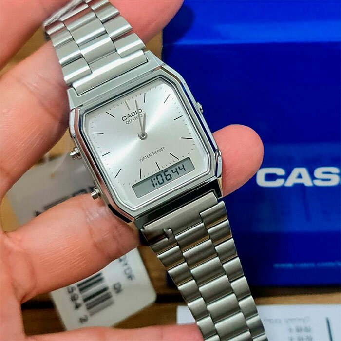 AQ-230A-7A Casio наручные часы кварцевые WR30 (3 атм) мужские, женские серебряный секундомер будильник отображение числа, второй часовой пояс, отображение дня недели, отображение месяца бесшумный механизм акриловое стекло 5 572 ₽ Подробнее