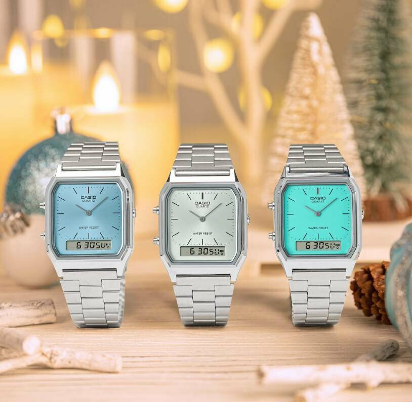 AQ-230A-2A2 Casio наручные часы кварцевые WR30 (3 атм) мужские, женские серебряный, бирюзовый секундомер будильник отображение числа, второй часовой пояс, отображение дня недели, отображение месяца акриловое стекло 5 572 ₽ Подробнее