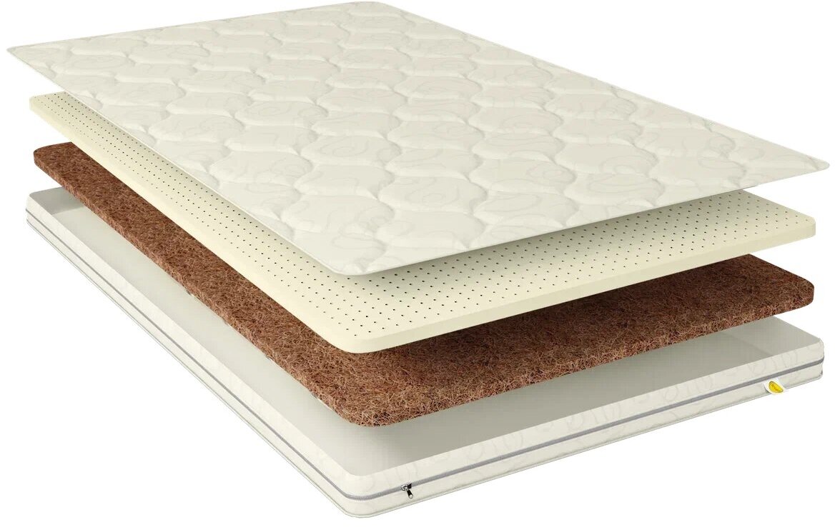 Лучшие цены. Ортопедический топпер-наматрасник Cocos Latex 4 с разными сторонами жесткости. Одна сторона средней жесткости, другая жесткая. С одной стороны добавлен слой натурального латекса высотой 2 см, усиливающий анатомические свойства, комфорт и продлевающий срок службы наматрасника. С другой стороны добавлен слой латексированной кокосовой койры толщиной 2 см, придающий дополнительную жесткость и долговечность. Магазины в вашем городе.