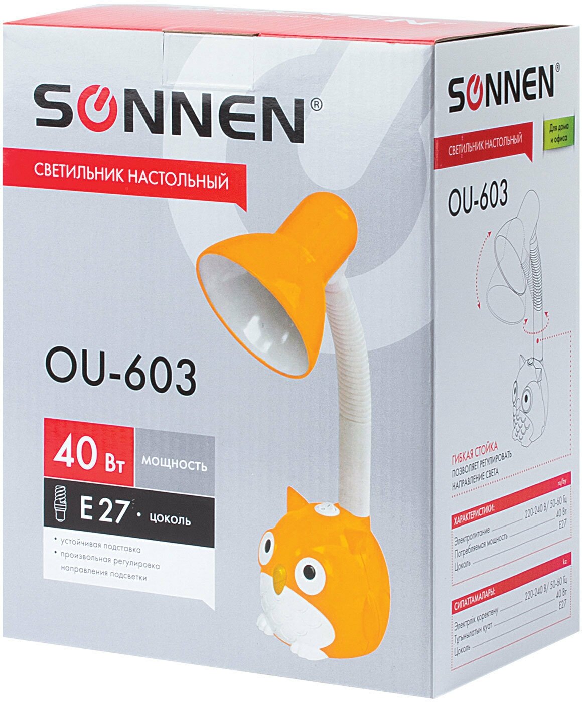 Лучшие цены. Настольный детский светильник SONNEN OU-603 с совой — яркое решение для местного освещения в детской комнате, на письменном столе школьника. Легкость в управлении и гибкая стойка делают эксплуатацию светильника максимально комфортной. Для светильника высотой 38 см подходит любая технология бытовых ламп (накаливания, люминисцентная, светодиодная) с цоколем Е27, благодаря чему можно самостоятельно выбрать яркость и оттенок света. Магазины в вашем городе.