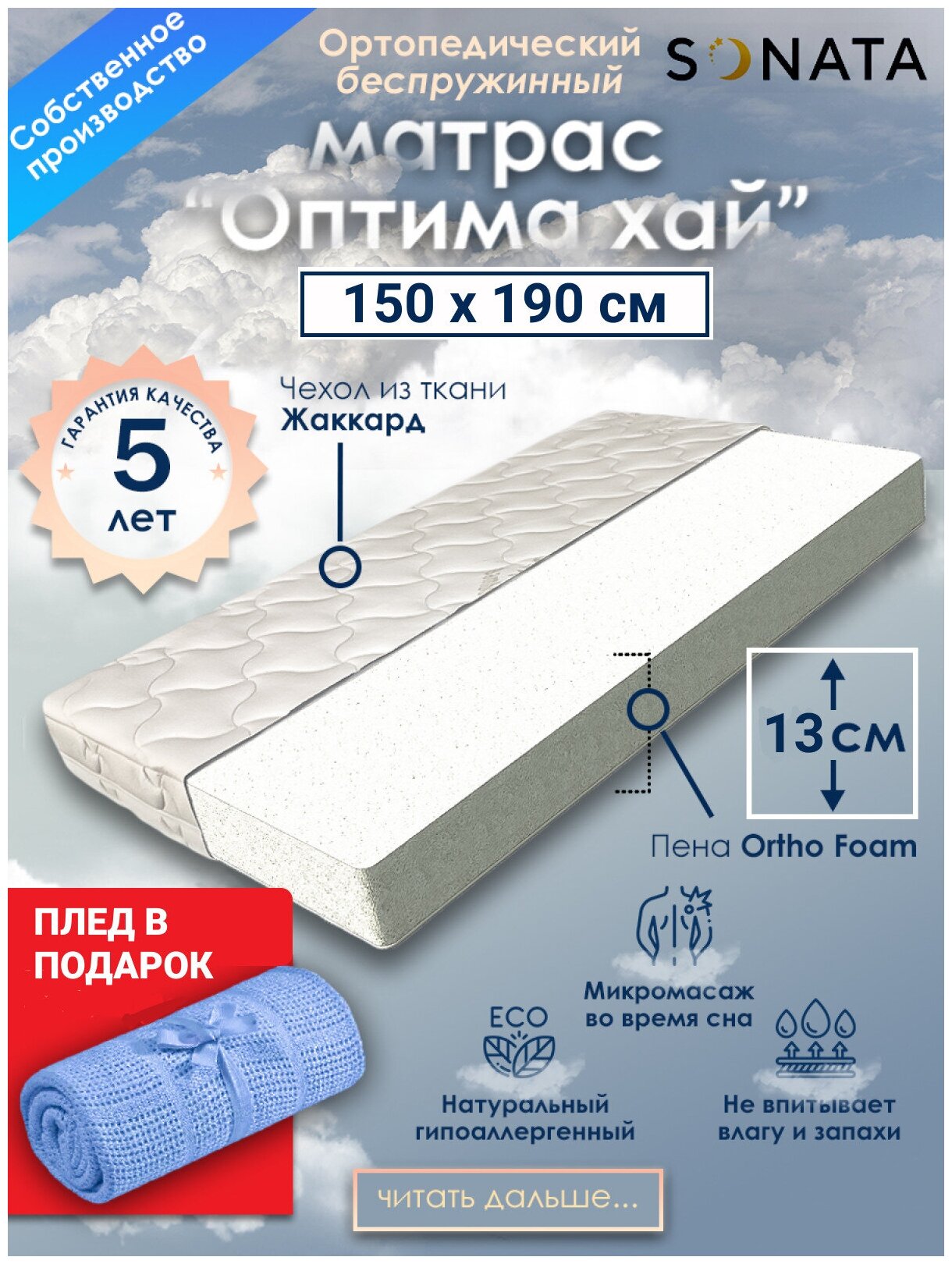 Матрас Оптима Хай, Беспружинный, 150х190х13 см 150 на 190 ортопедический 150 х 190
