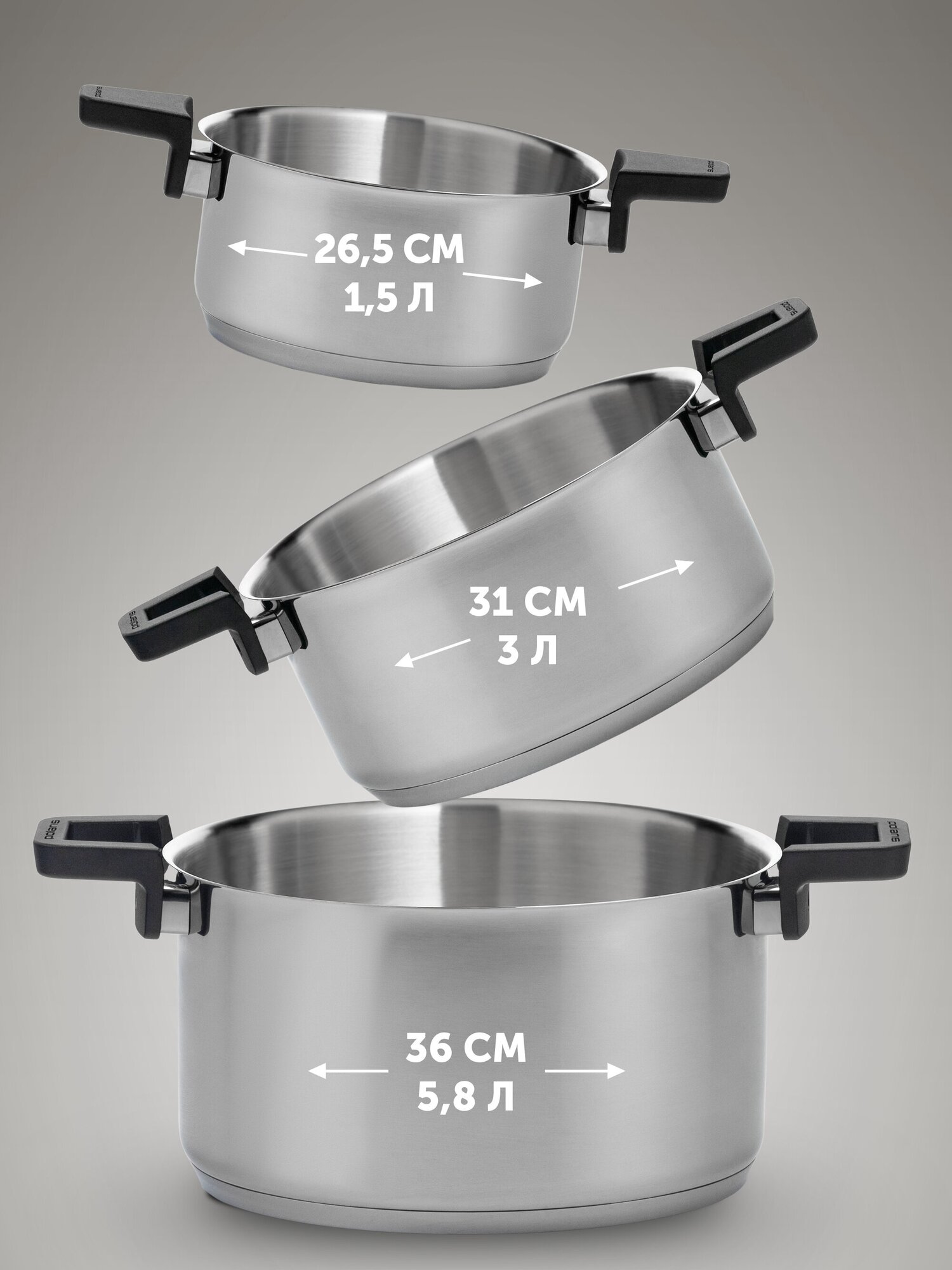 Набор кастрюль компактного хранения из нержавеющей стали с крышками, Fold&Keep-6S POLARIS