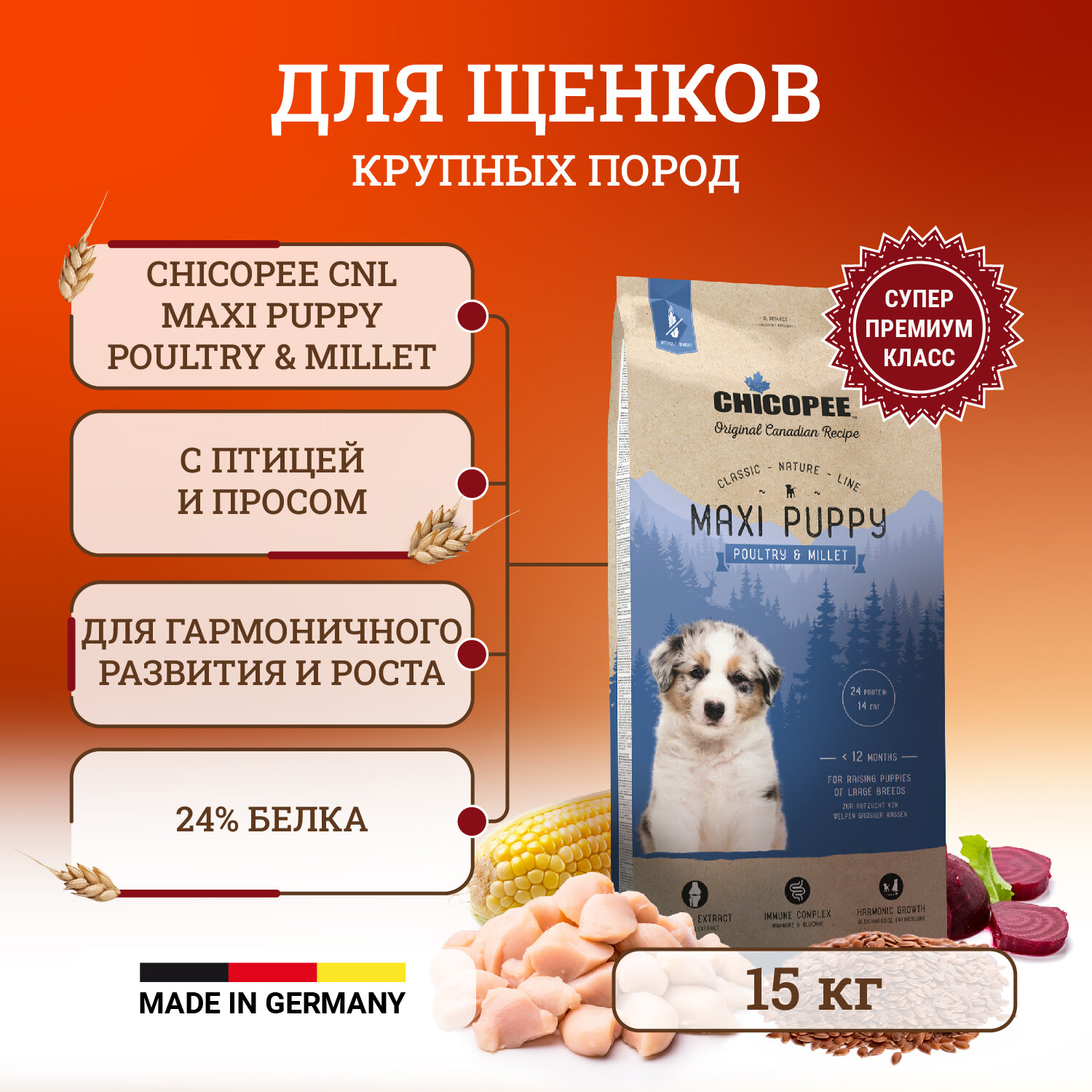 CHICOPEE CLASSIC NATURE LINE MAXI PUPPY POULTRY & MILLET для щенков крупных пород с птицей и просом (15 кг)