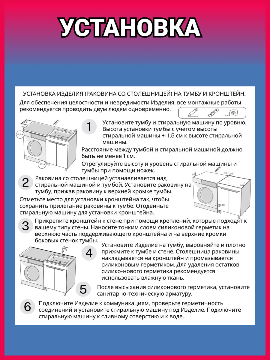 Раковина белая Марсал 130 прав. на стиральную машину 1300*489 13 509 ₽ Подробнее