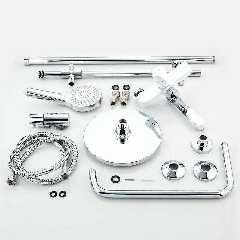 Лучшие цены. Душевая система Frap F2441. Характеристики: - Цвет: белый, хром. - Материал: латунь. - Управление: однорычажное. - Излив: поворотный. - Механизм: керамический картридж. - Размер верхнего душа: 225х225 мм. - Количество режимов струи ручного душа: 3. - Длина шланга: 1500 мм. - Монтаж: на стену. В комплекте поставки: - Смеситель. - Верхний душ. - Душевая штанга. - Ручной душ. - Душевой шланг. - Держатель ручного душа. - Набор эксцентриков. Магазины в вашем городе.