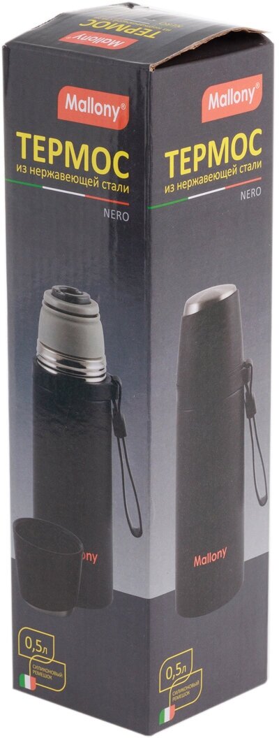 Термос Mallony NERO 005242, с крышкой-чашкой, с ремешком, 0,5л, нержавеющая сталь
