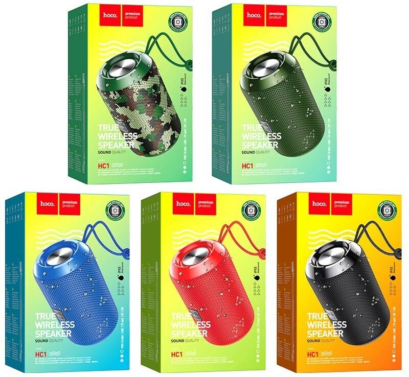 Портативная колонка Hoco HC1, 5 Вт, 1200 мАч, BT5.0, microSD, USB, AUX, FM-радио, черная
