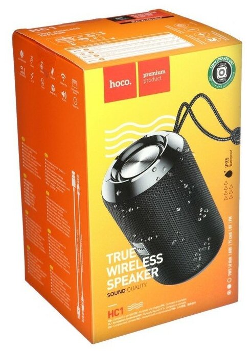 Bluetooth колонка HOCO HC1 Trendy BT5.0, 5W, AUX/TWS/FM/microSD/USB, IPX5 (черный)
