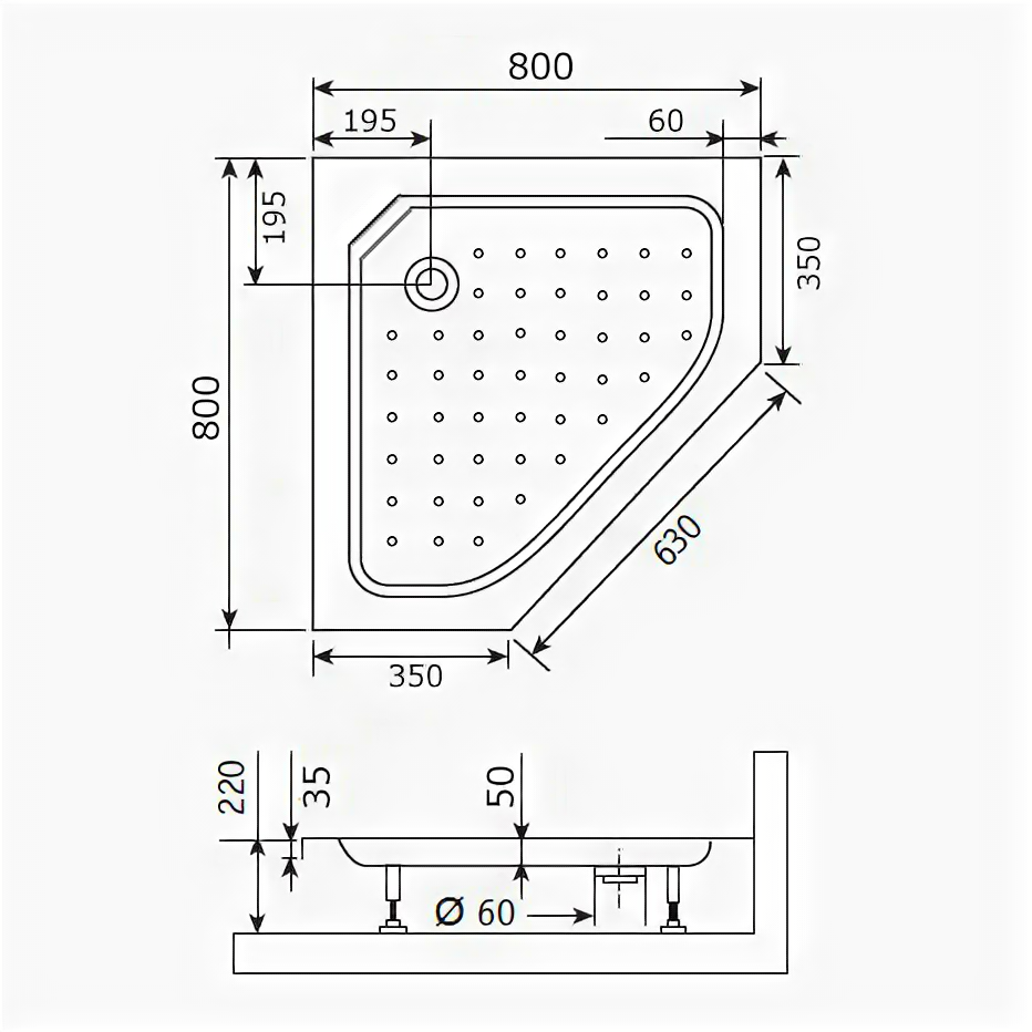 Душевой поддон RGW 80х80х3,5 см h22 STYLE , Трапеция Ø60 FW5-8 (16180588-11)
