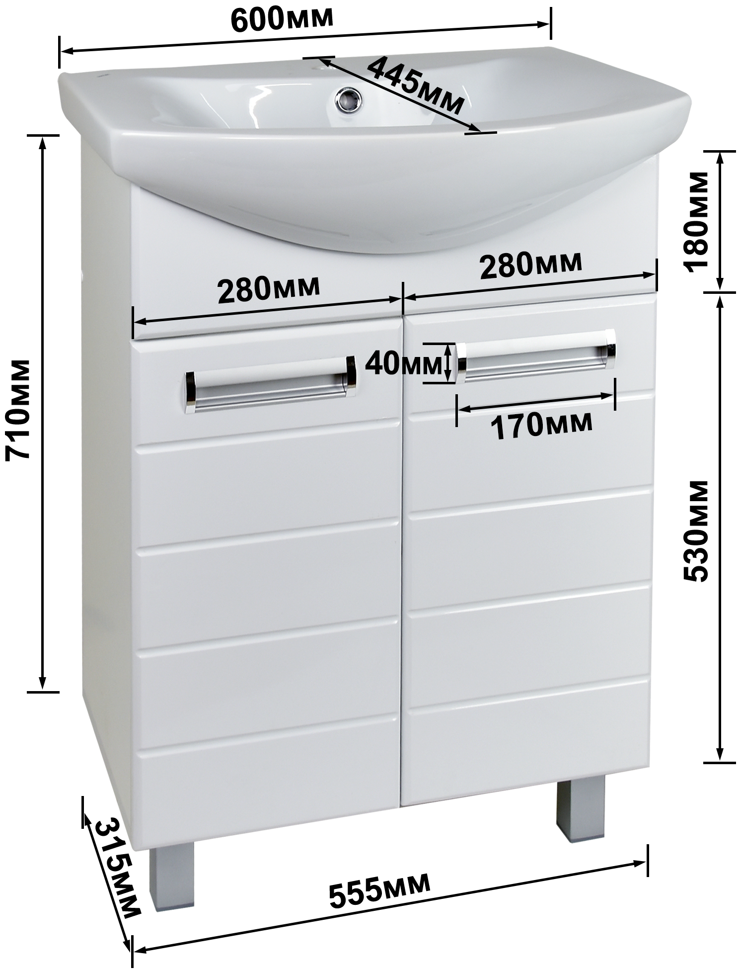 Тумба под умывальник Тумба Вега 60 напольная, белая, под умывальник Балтика 60 DORATIZ 9912.502