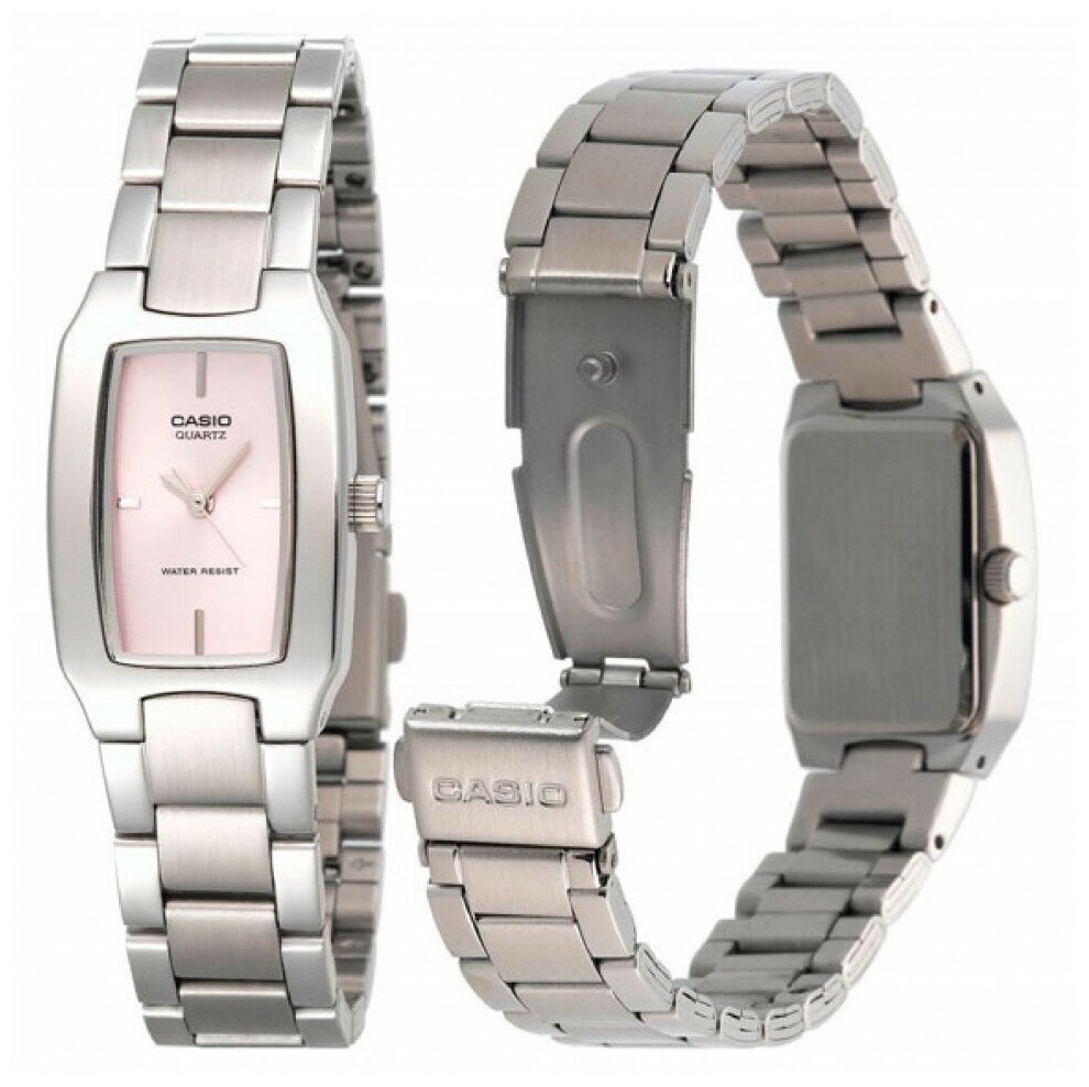 Лучшие цены. Общие характеристики часы Casio LTP-1165A-4C. Модуль 1330. Элегантные женские часы на браслете из нержавеющей стали. Стекло сферическое - минеральное. Тип : кварцевые, женские. Способ отображения времени : аналоговый (стрелки), формат 12 часов, секундная стрелка центральная. Цифры : объёмные риски. Источник энергии : от батарейки. Конструкция Водонепроницаемые : есть, WR30 (3 атм). Материал корпуса : нержавеющая сталь. Материал браслета : нержавеющая сталь. Магазины в вашем городе.