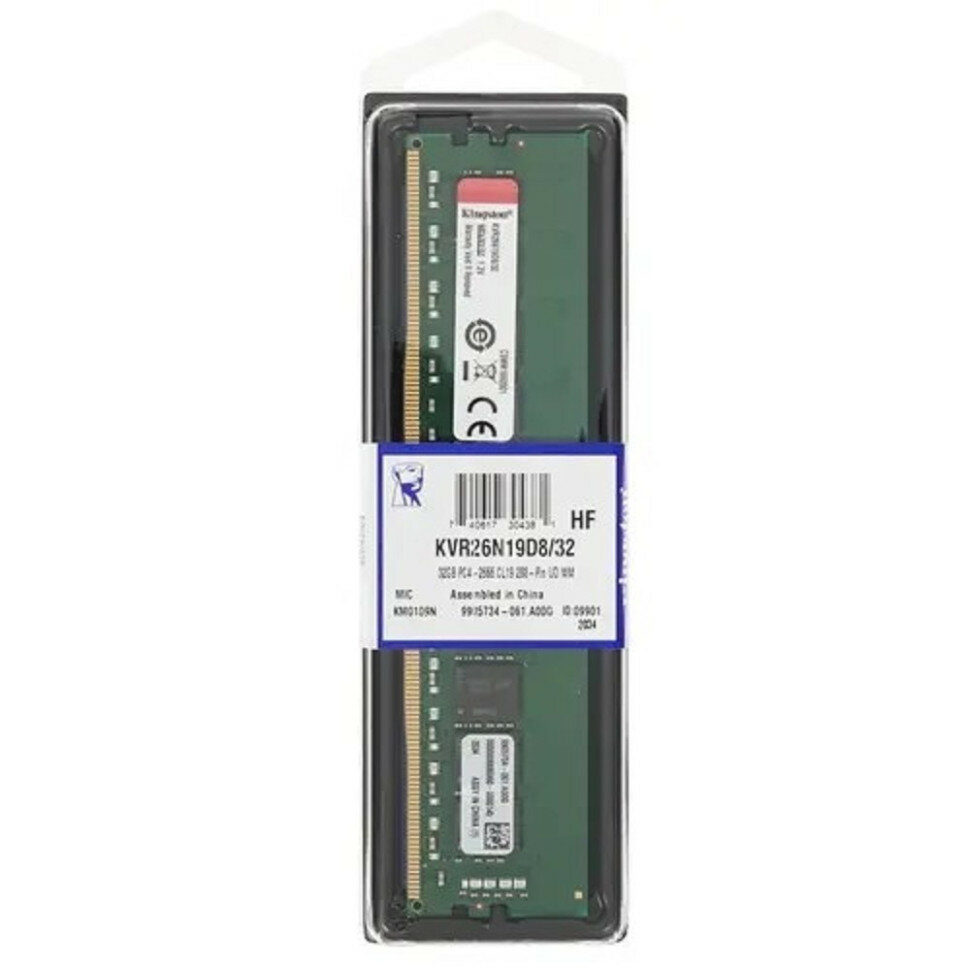 Оперативная память Kingston VALUERAM DDR4 - 32GB, 2666 МГц, DIMM, CL19, RTL (kvr26n19d8/32)