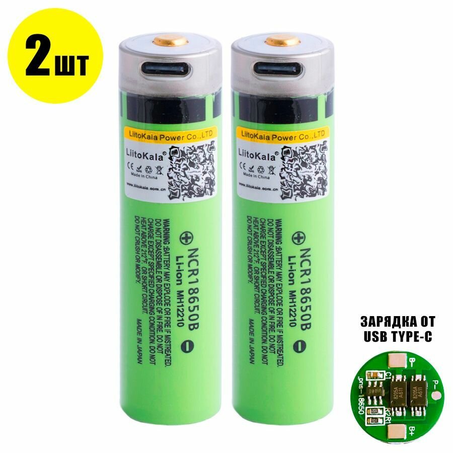 Аккумулятор Li-Ion 3400 мА·ч 3.7 В LiitoKala NCR18650B, 2 шт.